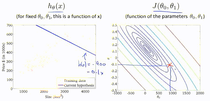 因此代价函数就不再只包含一个变量,为了统一可以对常量引入变量$x_0=1$。